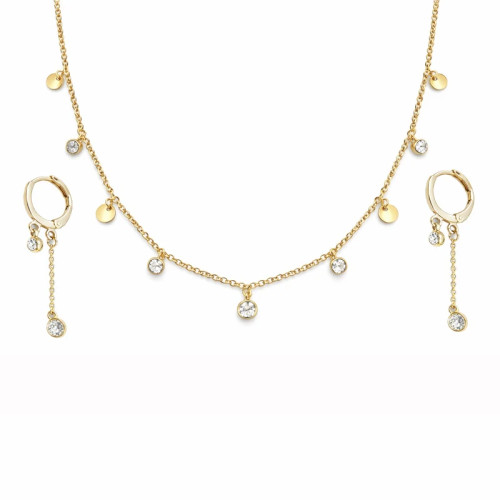 ست گردنبند و گوشوارهی طلایی با آویز و سنگهای رنگی