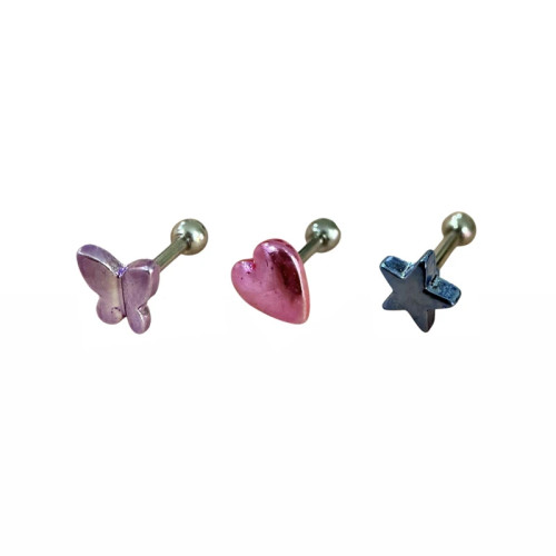 پیرسینگ گوش فانتزی طرح قلب، ستاره و پروانه – رنگی