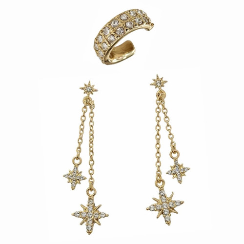 ست گوشواره آویزدار و پیرسینگ گوش نگیندار طرح ستاره – رنگ طلایی