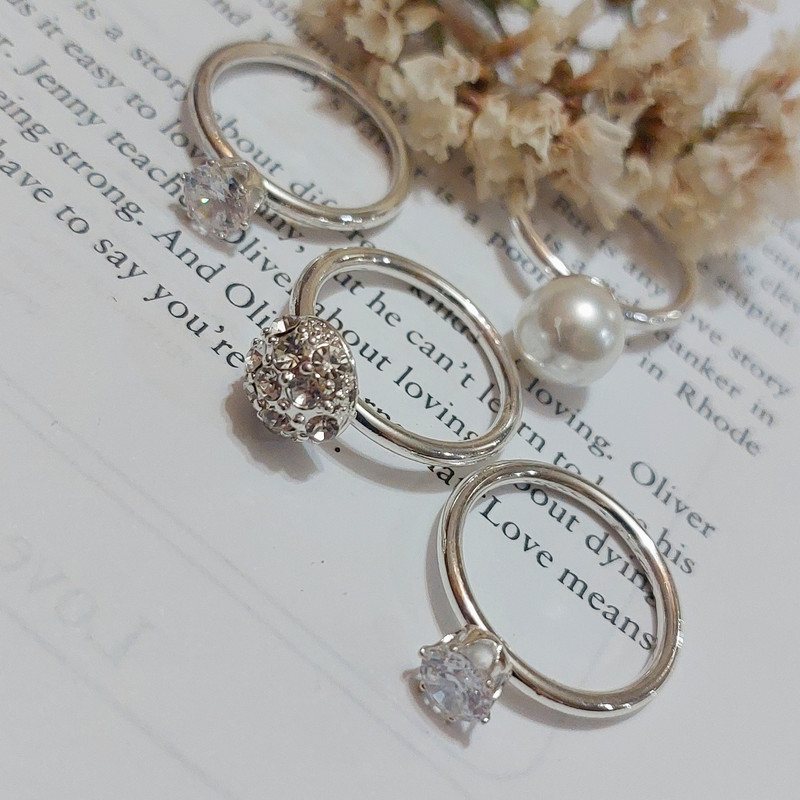 انگشتر زنانه مدل مروارید کریستالی مجموعه 4 عددی