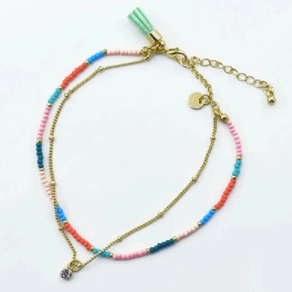 این پابند زنانه دو لایه با ترکیب زنجیر طلایی براق و ردیفی از مرواریدهای ظریف، انتخابی بسیار شیک و لطیف برای تکمیل استایل شماست. طراحی ساده اما خاص آن باعث میشود هم برای استفاده روزمره و هم برای مهمانیها و استایلهای تابستانی کاملاً مناسب باشد.