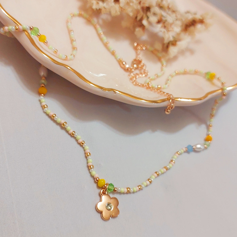 گردنبند زنانه مدل گل و مروارید