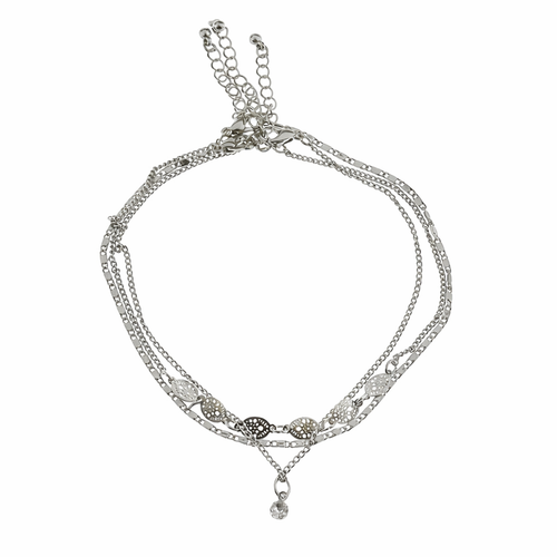 پابند زنانه چندلایه نقرهای سه عددی با آویز نگیندار – ظریف و شیک