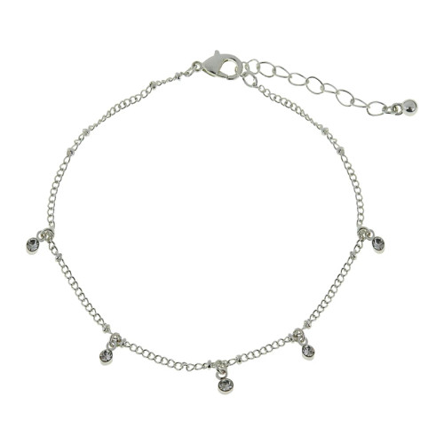 پابند زنجیری زنانه نقرهای با چند آویز کریستالی
