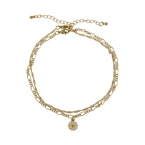 پابند زنجیری چند ردیفه زنانه با آویز گل بابونه